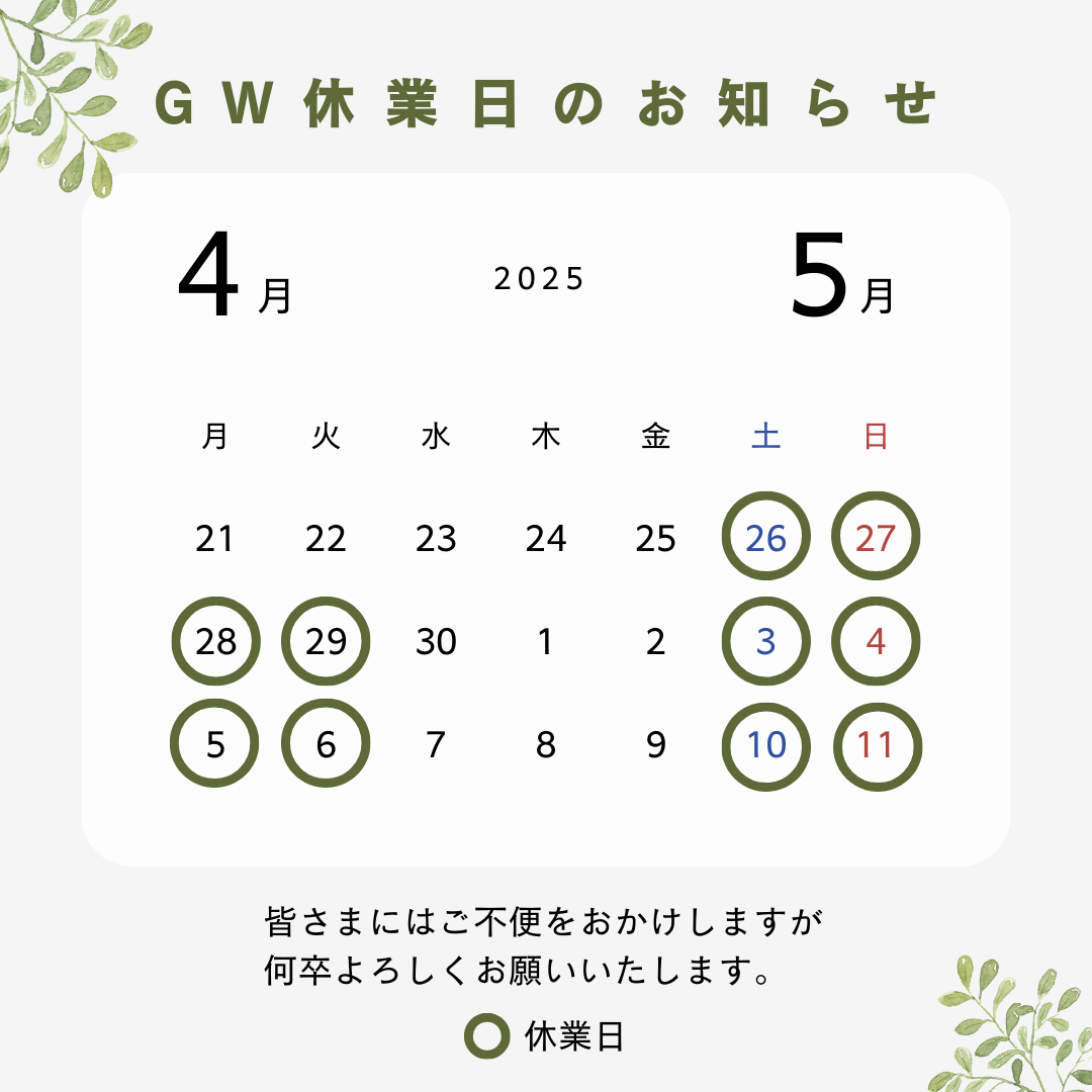 ゴールデンウィーク休業のお知らせ