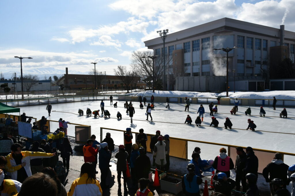 鶴岡市の小真木原公園にあるスケートリンク上で、